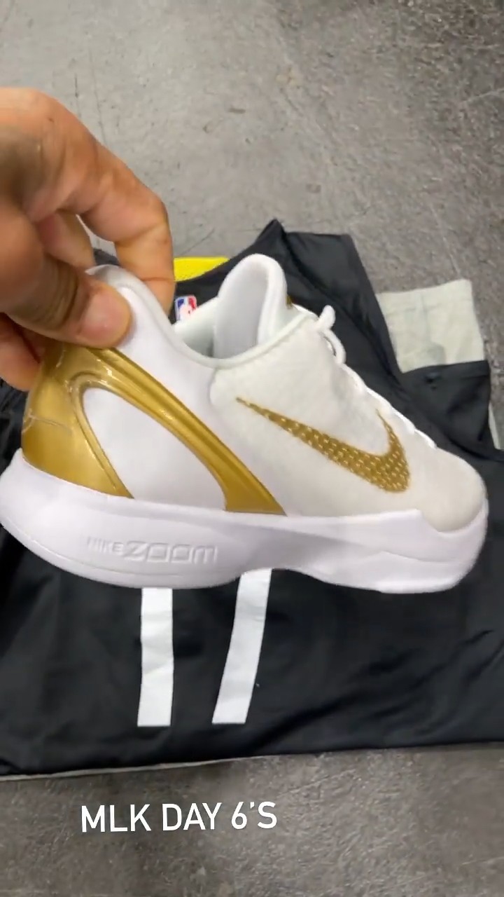 今天,鞋王 PJ 塔克晒出了一双白金 Kobe 6,并配文 MLK DAY,说明这就是一双马丁·路德·金纪念日配色。