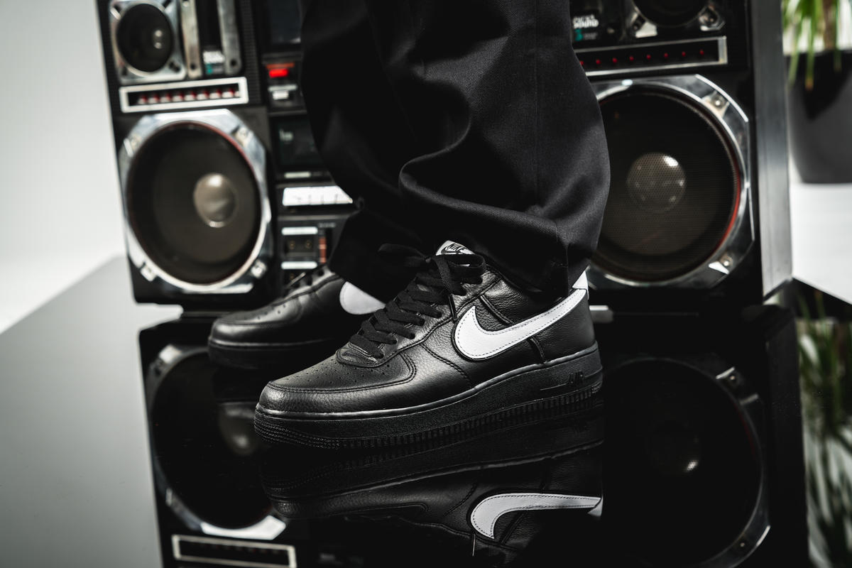 如果说前两双还算有点特色,那这双看起来平平无奇,极为常见的黑白主题 Air Force 1 就更离谱了。