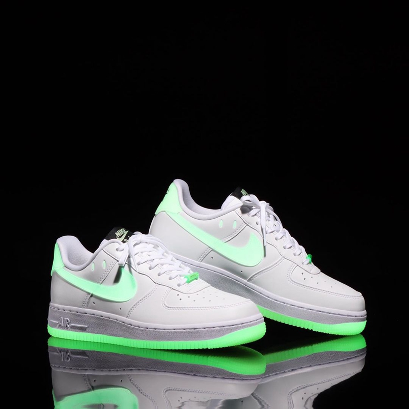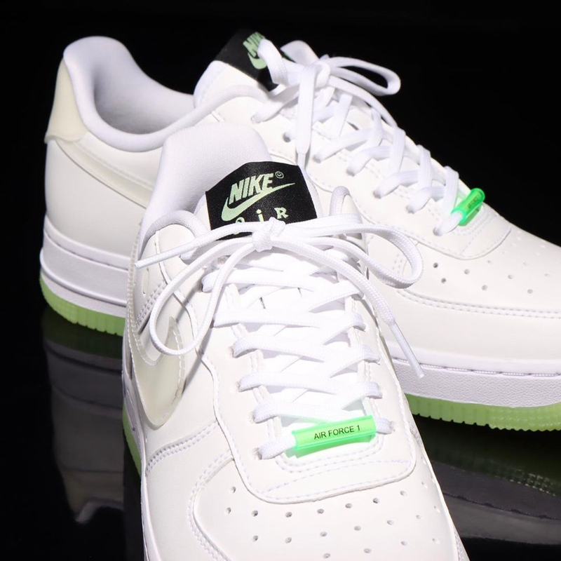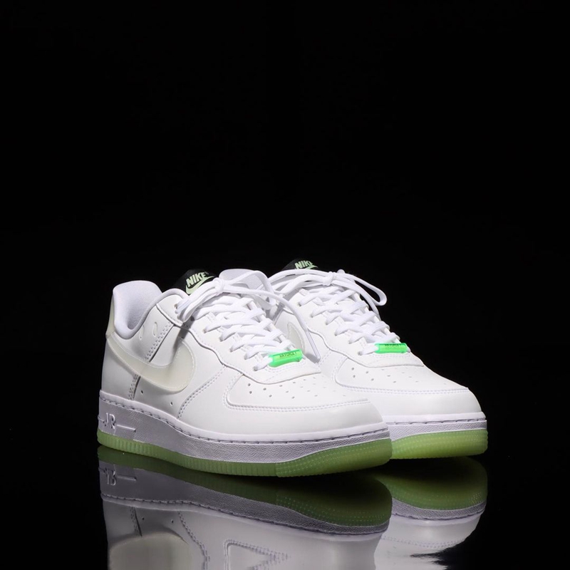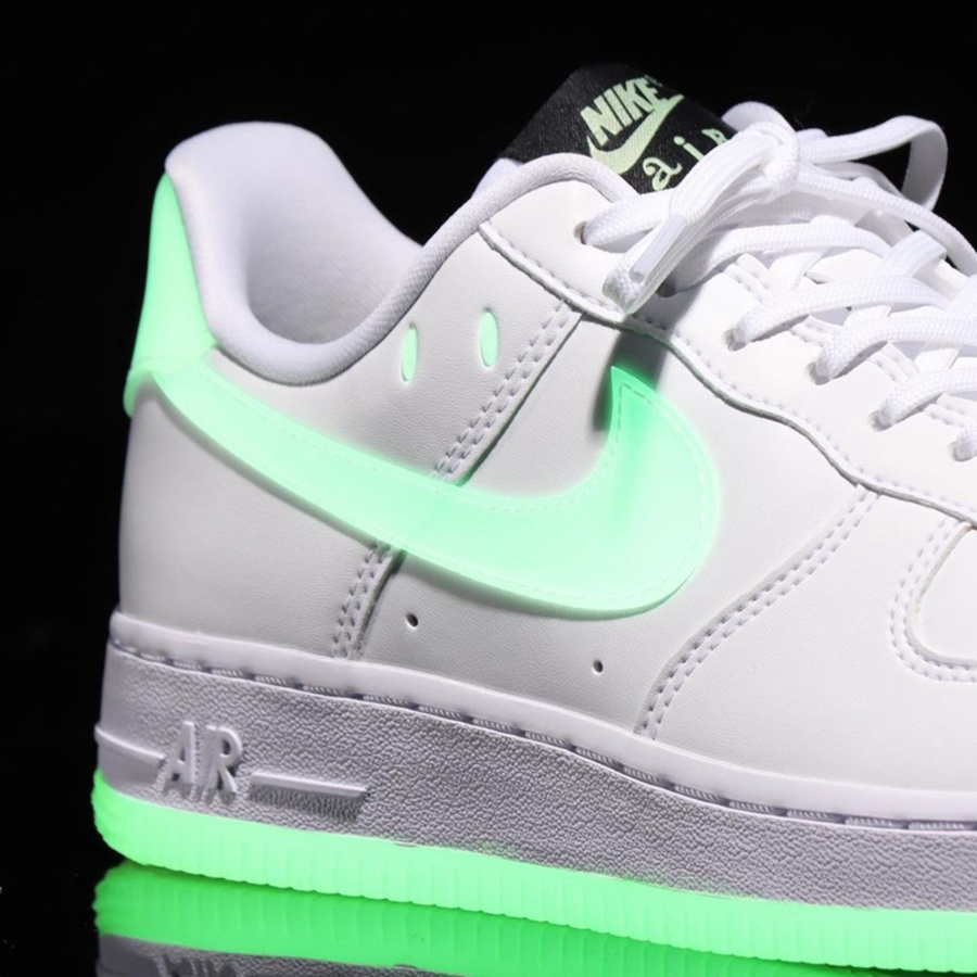 而这双全新的 Air Force 1 最大的亮点莫过于,外底、Swoosh Logo 和后跟 Nike Logo 均带有夜光效果。
