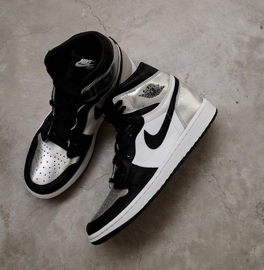 鞋面上的银色部分均以荔枝皮材质打造呈现高级的质感,鞋帮处的黑色飞翼 Logo 保留了 Air Jordan 1 原汁原味的 OG 细节。