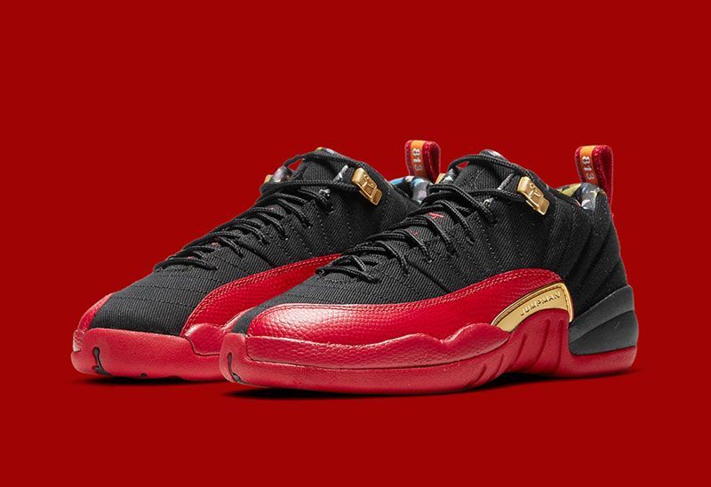 此次选用了相对冷门的 Air Jordan 12 Low 为蓝本打造,配色方面以「病倒」配色为原型,鞋款以上黑下红的配色方案呈现。