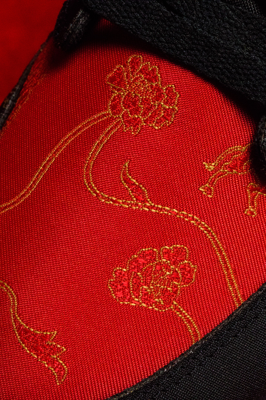 可拆卸的红色编织挂绳结合金色流苏的特殊设计,表达祈求一切顺遂的美好愿望,更突出了这双鞋的新春主题。