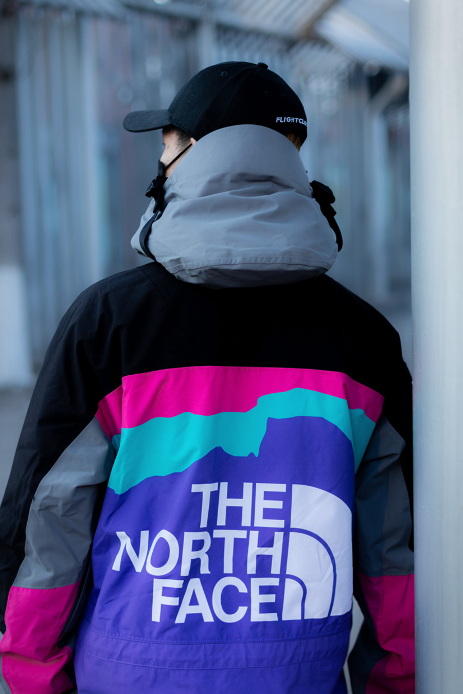 最大亮点在于保持经典剪裁的同时,通过醒目撞色与背后山峦线融合的 TNF Logo,营造复古气氛下的视觉冲击。