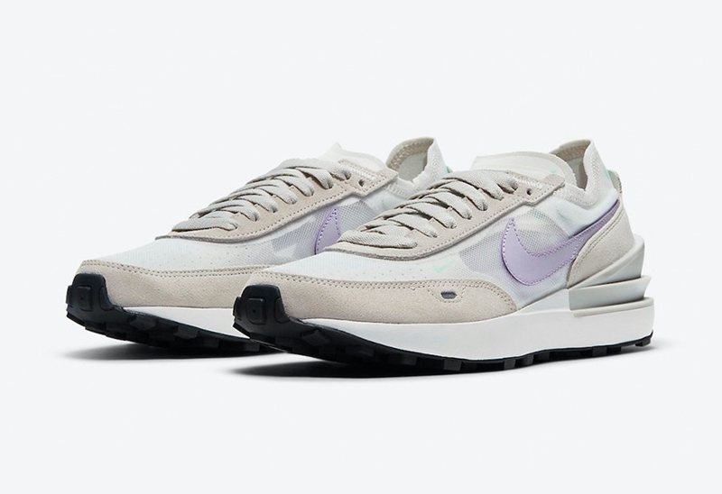 前段时间 Nike 推出了全新的 Waffle One 鞋型,外观上几乎与 Sacai 联名鞋一模一样,同样采用 Daybreak 为蓝本,白色的网眼鞋面搭配米色麂皮鞋头,质感低调且高级。