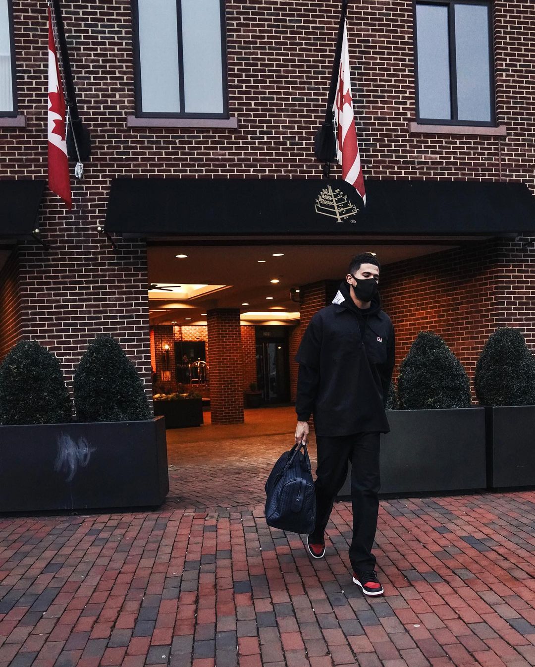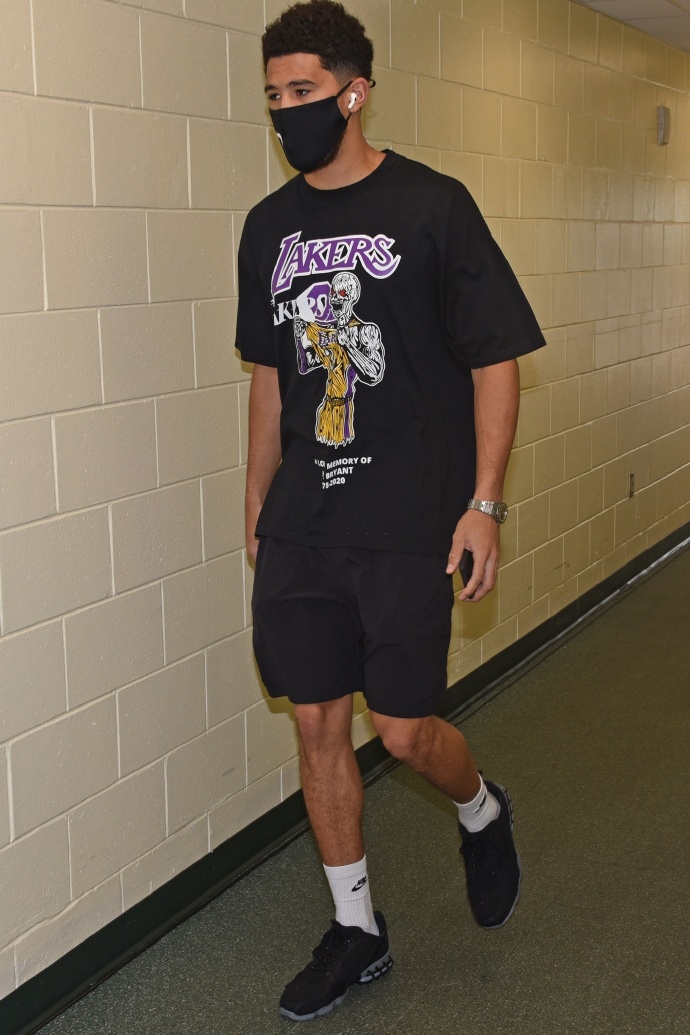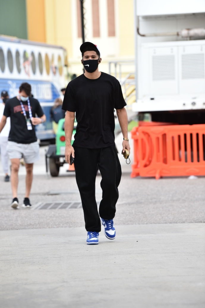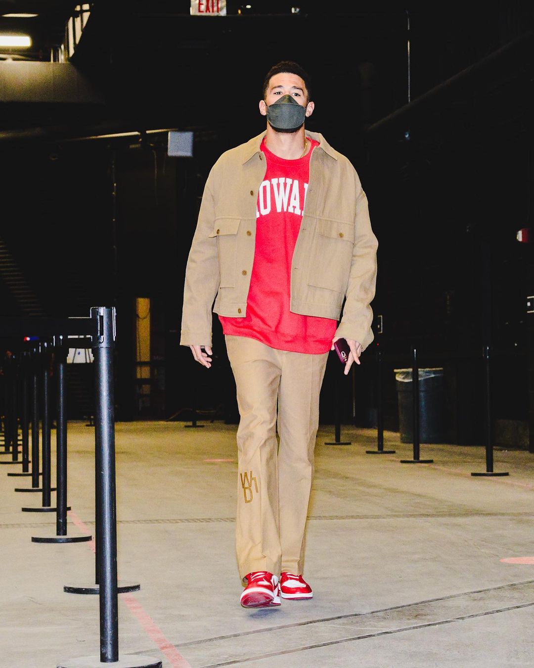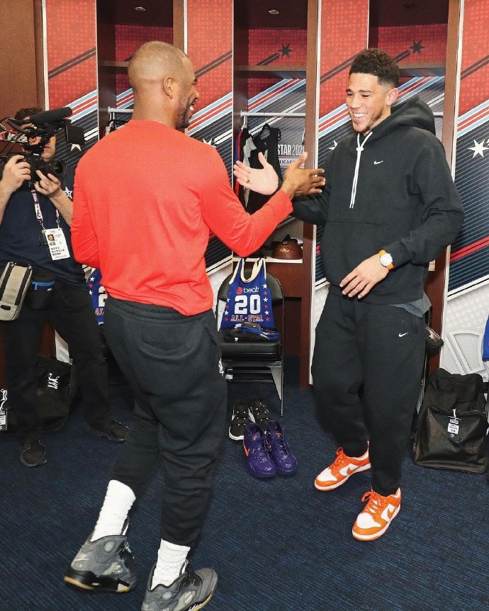 恰巧德文·布克也有一双火星鞋上脚,小编只想问问是不是詹娜喜欢火星鞋啊...