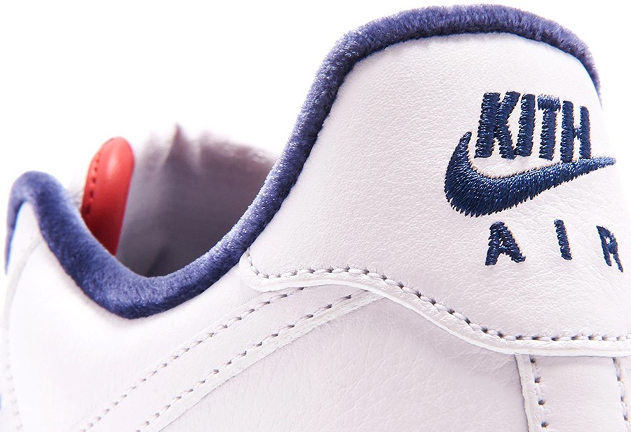 鞋身中部压印有 KITH Logo ,搭配鞋舌处双方 Logo 并以法国国旗的红白蓝三色为底色,彰显联名身份。