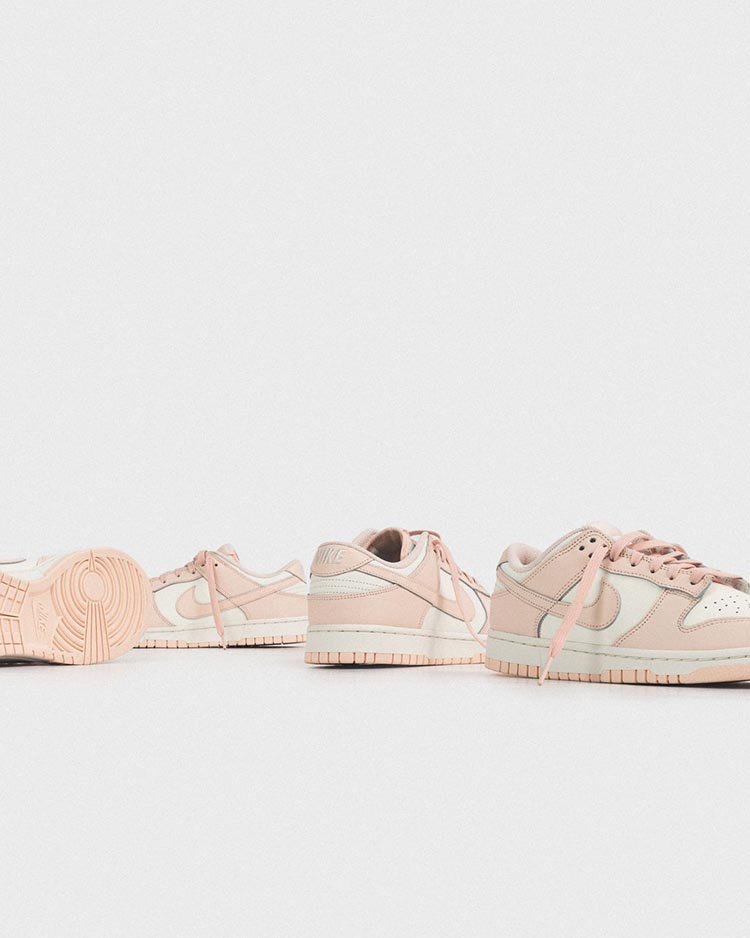 与「皇家蓝」Dunk Low 同步发售的还有这双「樱花粉」Nike Dunk Low,粉粉嫩嫩的装扮直戳女鞋头的心头!