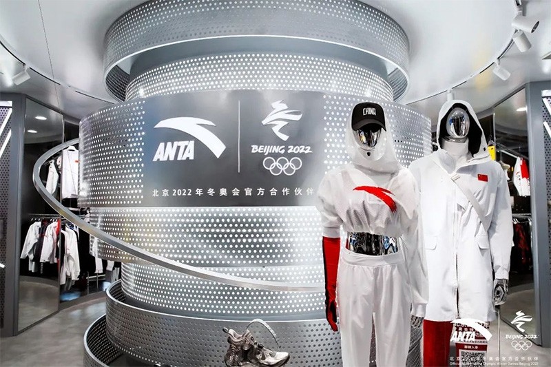 伴随着 2022 年冬奥会的临近,安踏也是发布了北京 2022 冬奥会特许商品及运动服饰,同时也开设了国旗款独立店铺,成为奥运与大众衔接的桥梁。