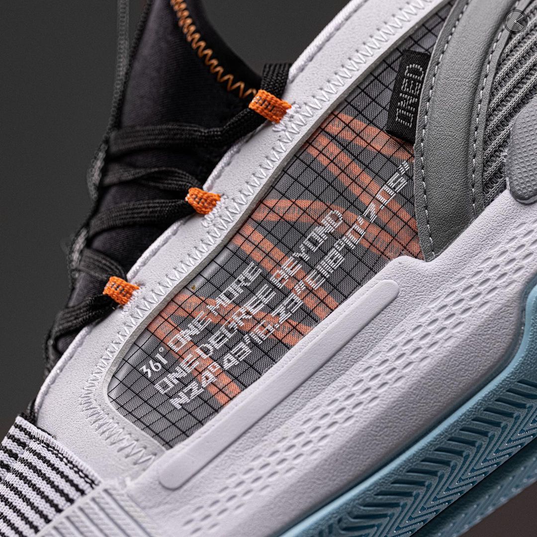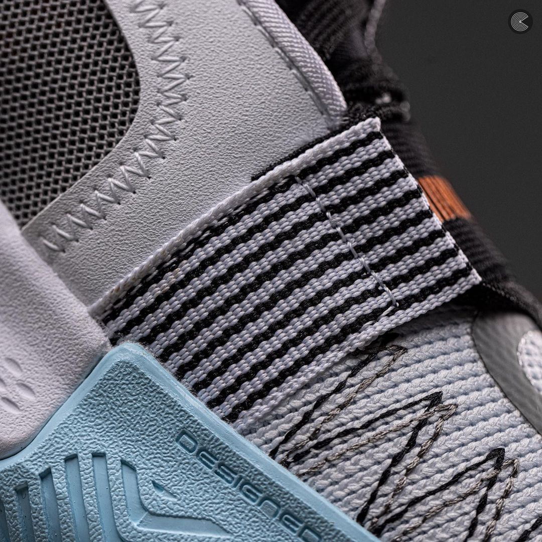 全新配色整体风格颇为简约,以经典的黑白灰为主题,橙色细节与淡蓝色的外底带来一丝活力。