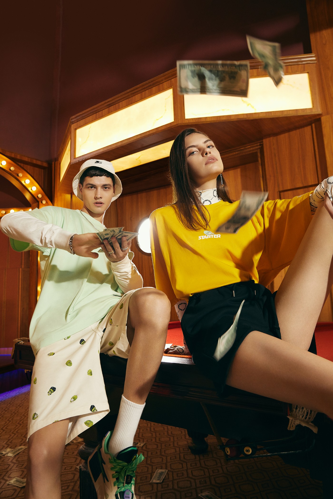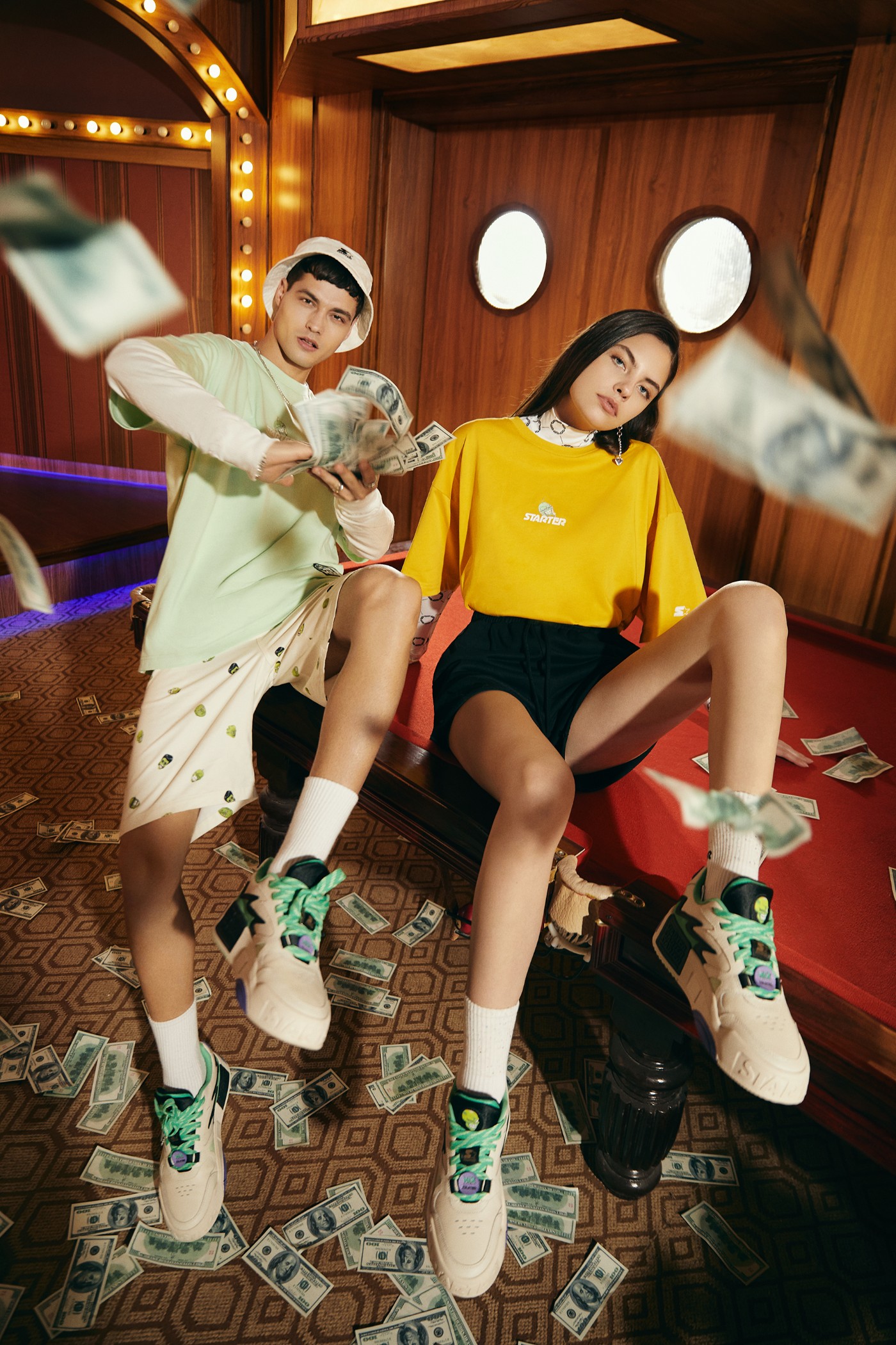 此次联名在 STARTER BLACK LABEL 的常用面料基础上融入天丝、蛀虫纱等更适合夏季的透气面料,打造出T恤、衬衫、背心等服饰单品,并同步推出鞋、帽、手拎包联名配饰。