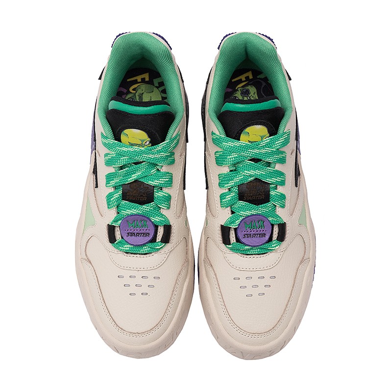 TER BLACK LABEL x THE MASK 还推出了休闲 VOL 鞋款,从经典的 70 年代复古篮球鞋中汲取灵感,并采用变相怪杰配色作为主要视觉,融入夜光等潮流元素,凸显联名款的设计主题与特殊效果。