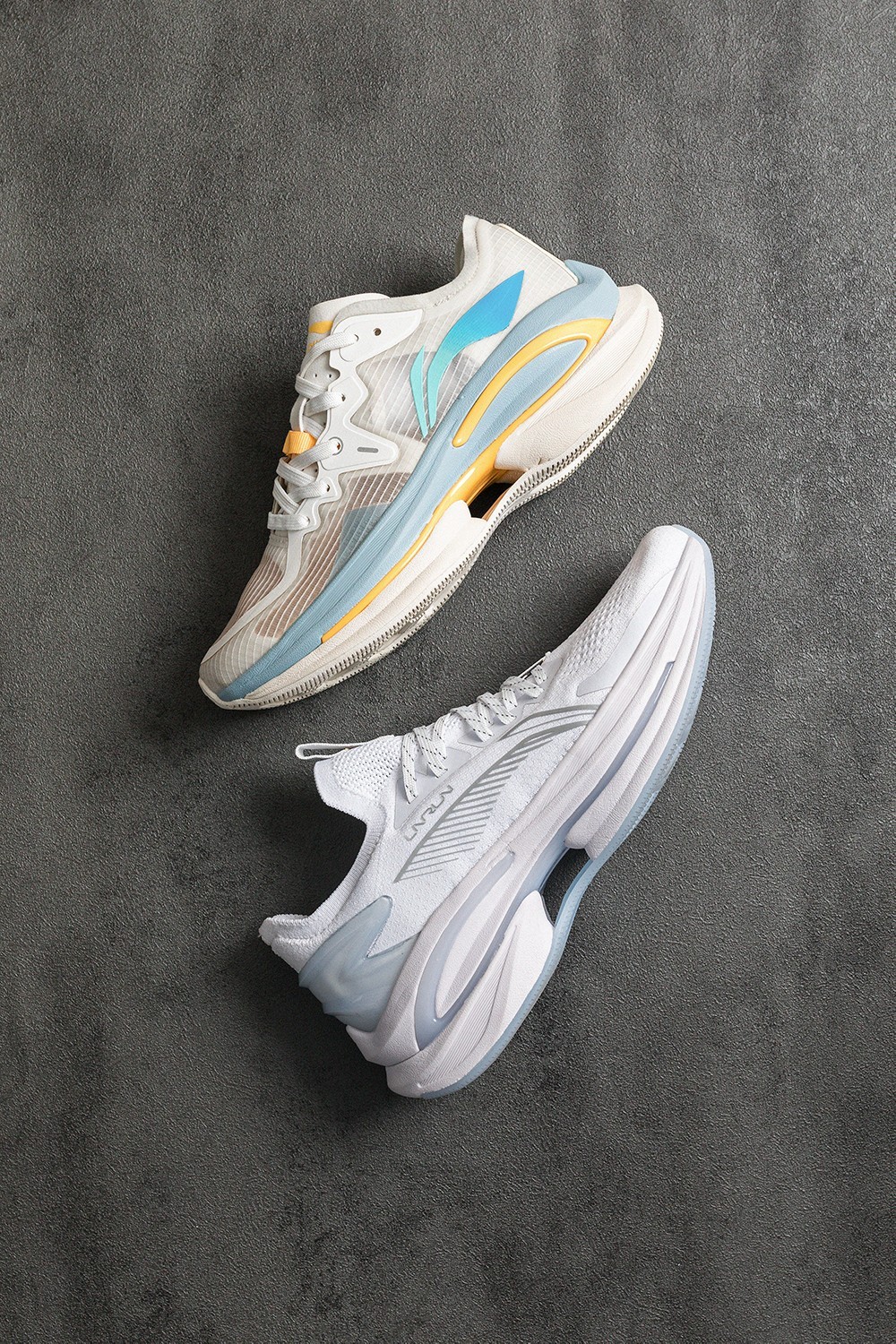 夸张的双层鞋底是全鞋的点睛之笔,中底采用李宁新版高性能弹性体,轻量化的同时提供十分柔软的脚感。