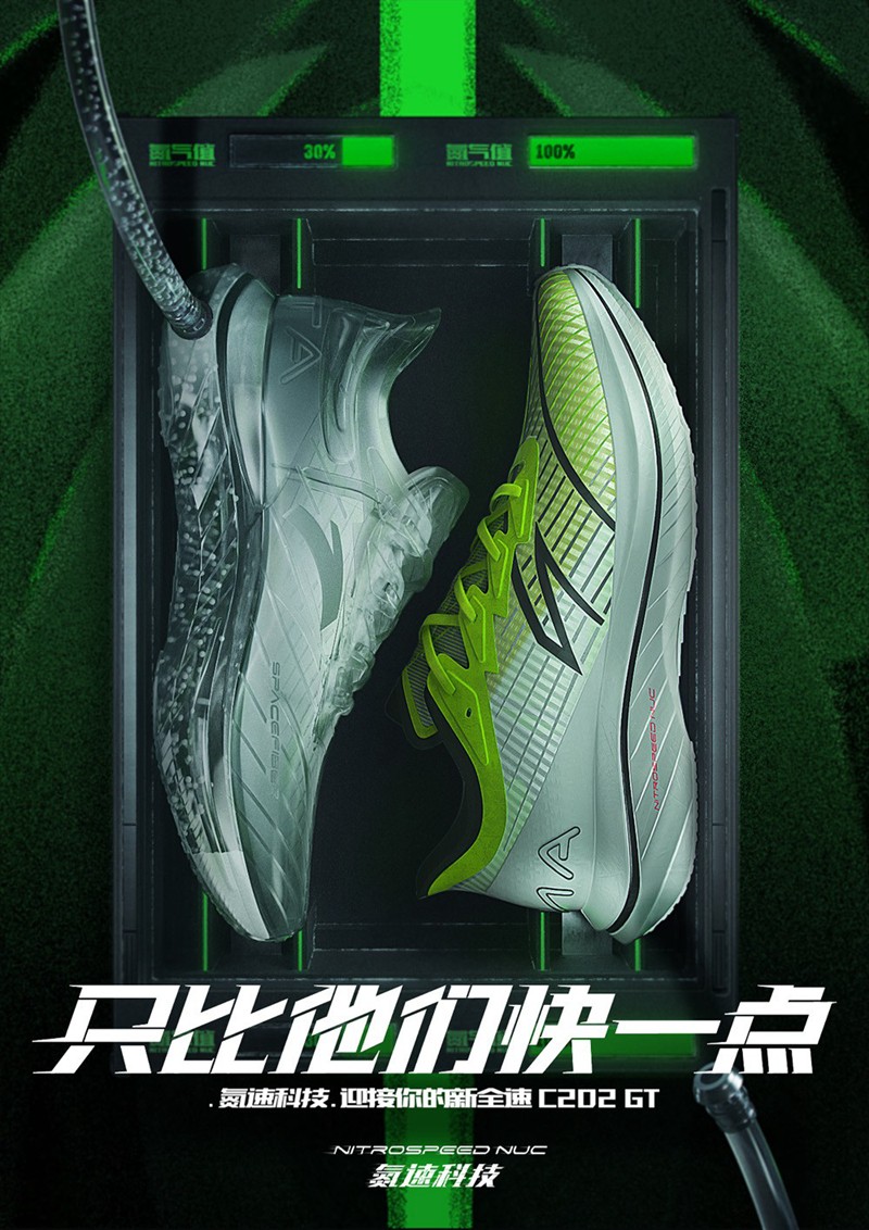 压轴登场的这双 C202 GT 是安踏近期打造的专业竞速跑鞋,中底加持了 NITROSPEED NUC 材料。