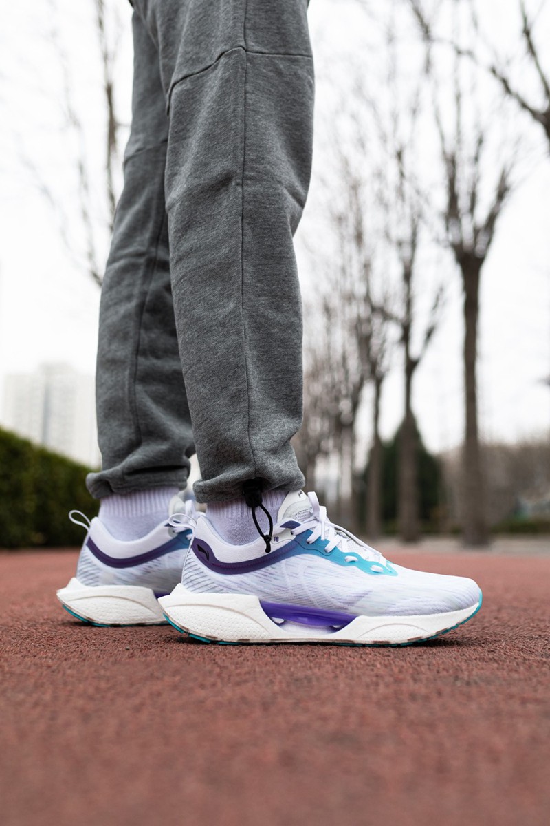 另外,灵感来源于古琴的中底的镂空结构设计,在最大化减轻重量的同时,为脚部带来更好支撑。