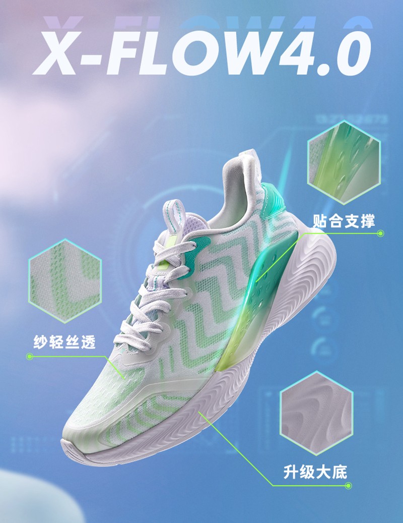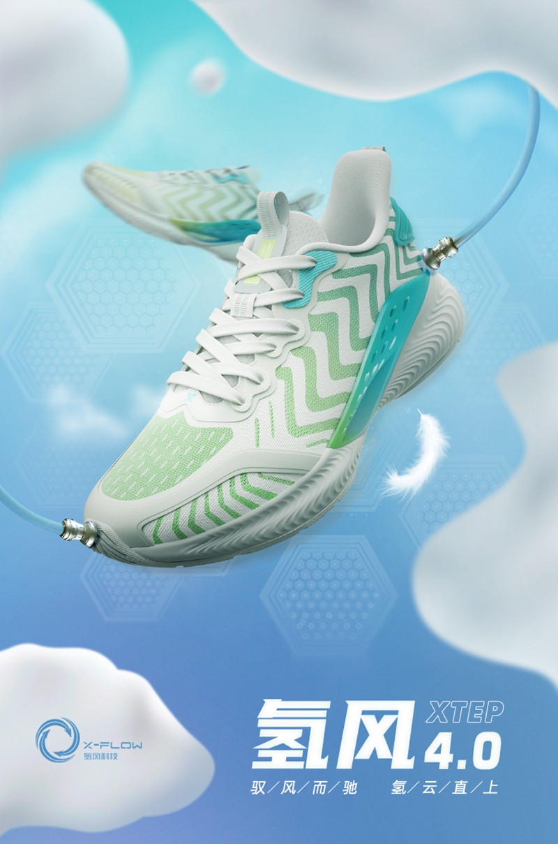 这双氢风 4.0 鞋如其名,搭载特步最新 X-FLOW 氢风 4.0 科技,可以同时兼顾鞋身轻量化和缓震性能。