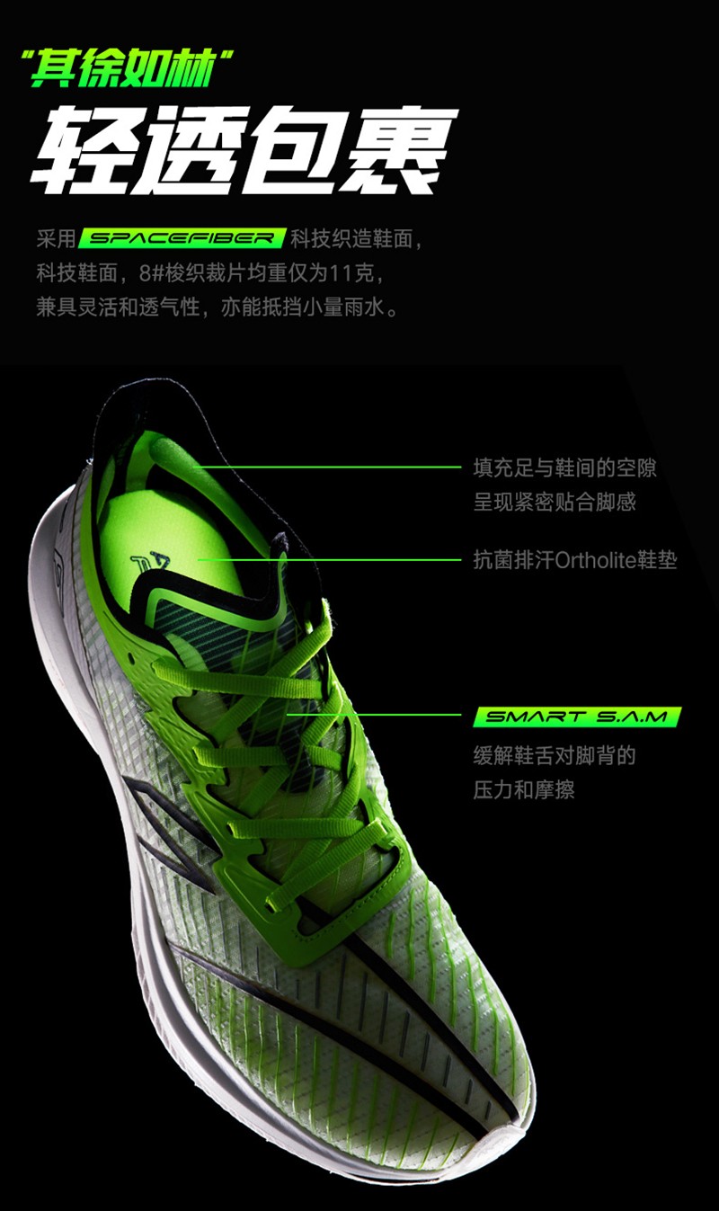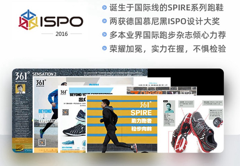 这双来自 361 度国际线的 SpireS 来头可不小,曾两度获得德国 ISPO 设计大奖,绝对的国产骄傲。