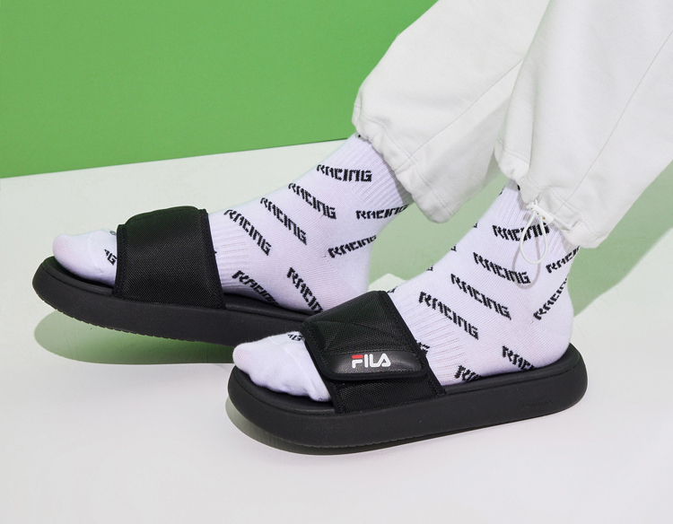 这双 FILA FUSHION 拖鞋的鞋面采用魔术贴设计,保证实用的同时,视觉层次感也十分丰富。