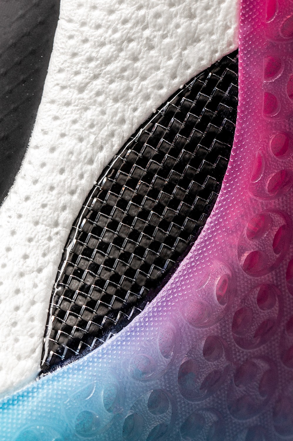 白色中底搭配黑色外露式碳板,最后在蓝粉渐变效果的外底衬托下,层次分明!