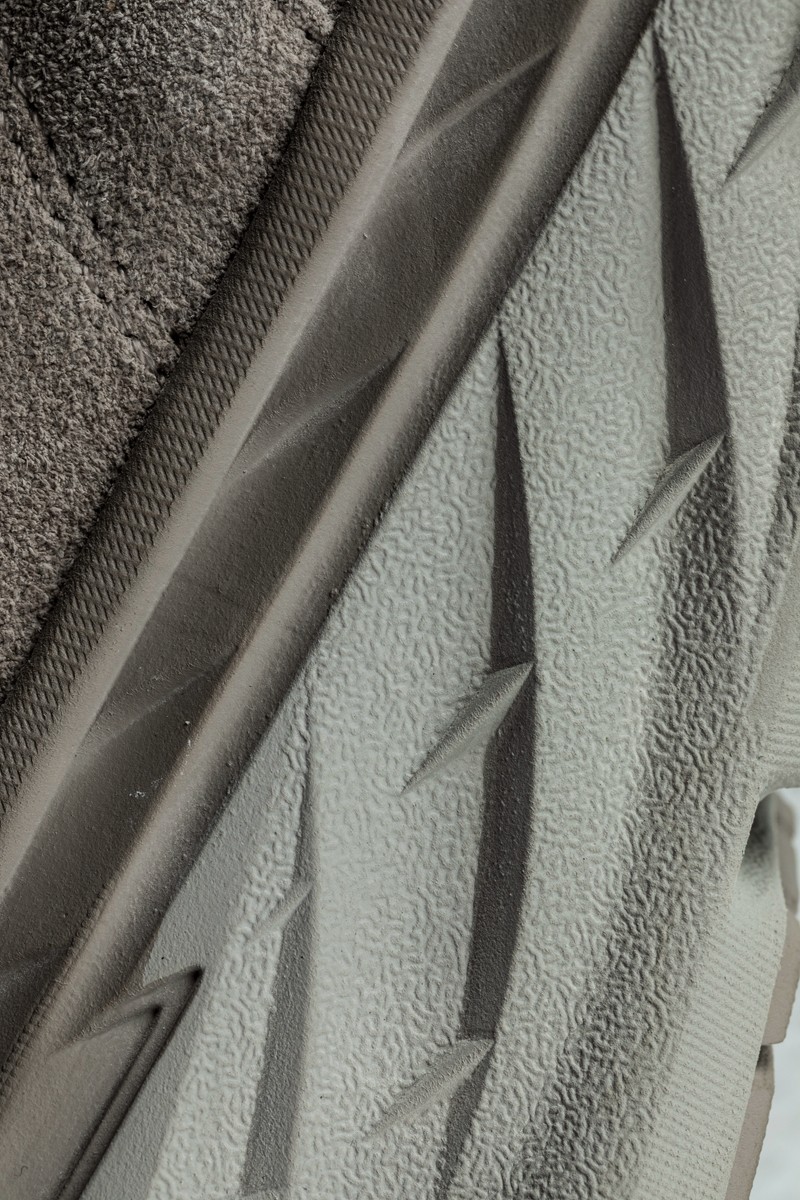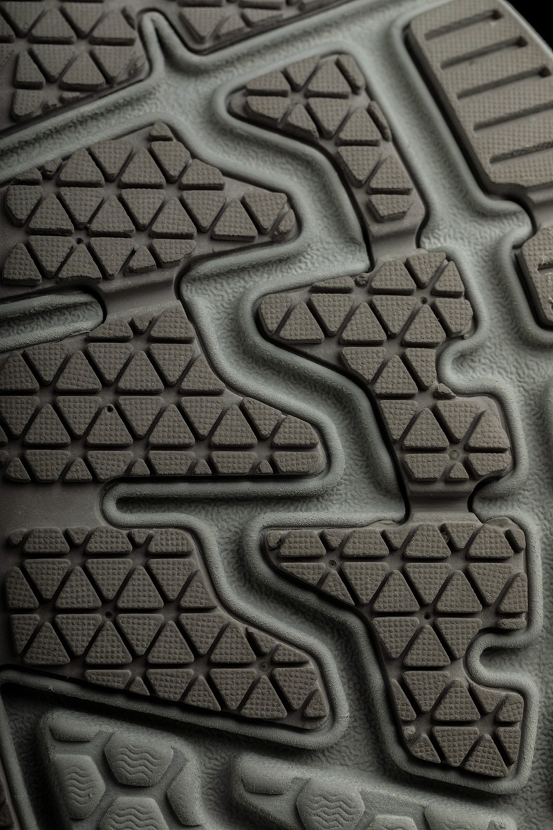 外底设计参照 HOKA 户外运动鞋系列,细小的颗粒纹路为穿着时提供更强的抓地力,另外橡胶的材质也让持久度大大增强。