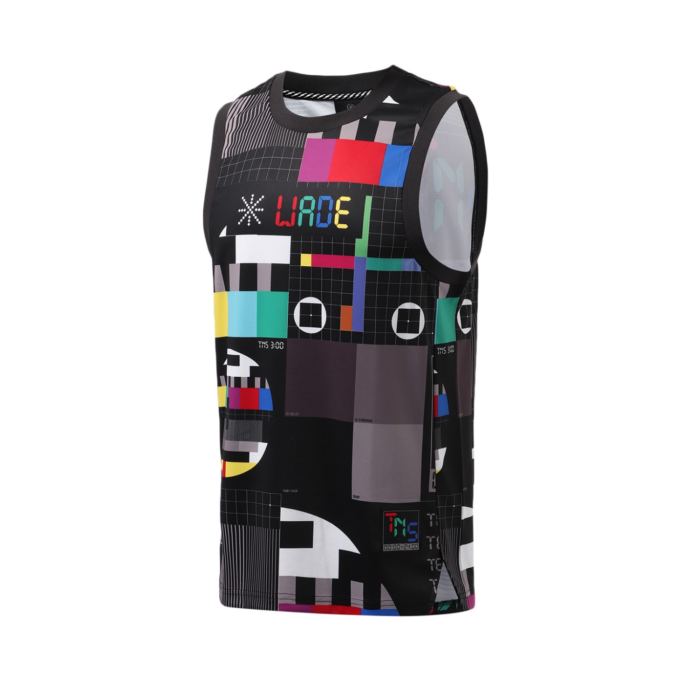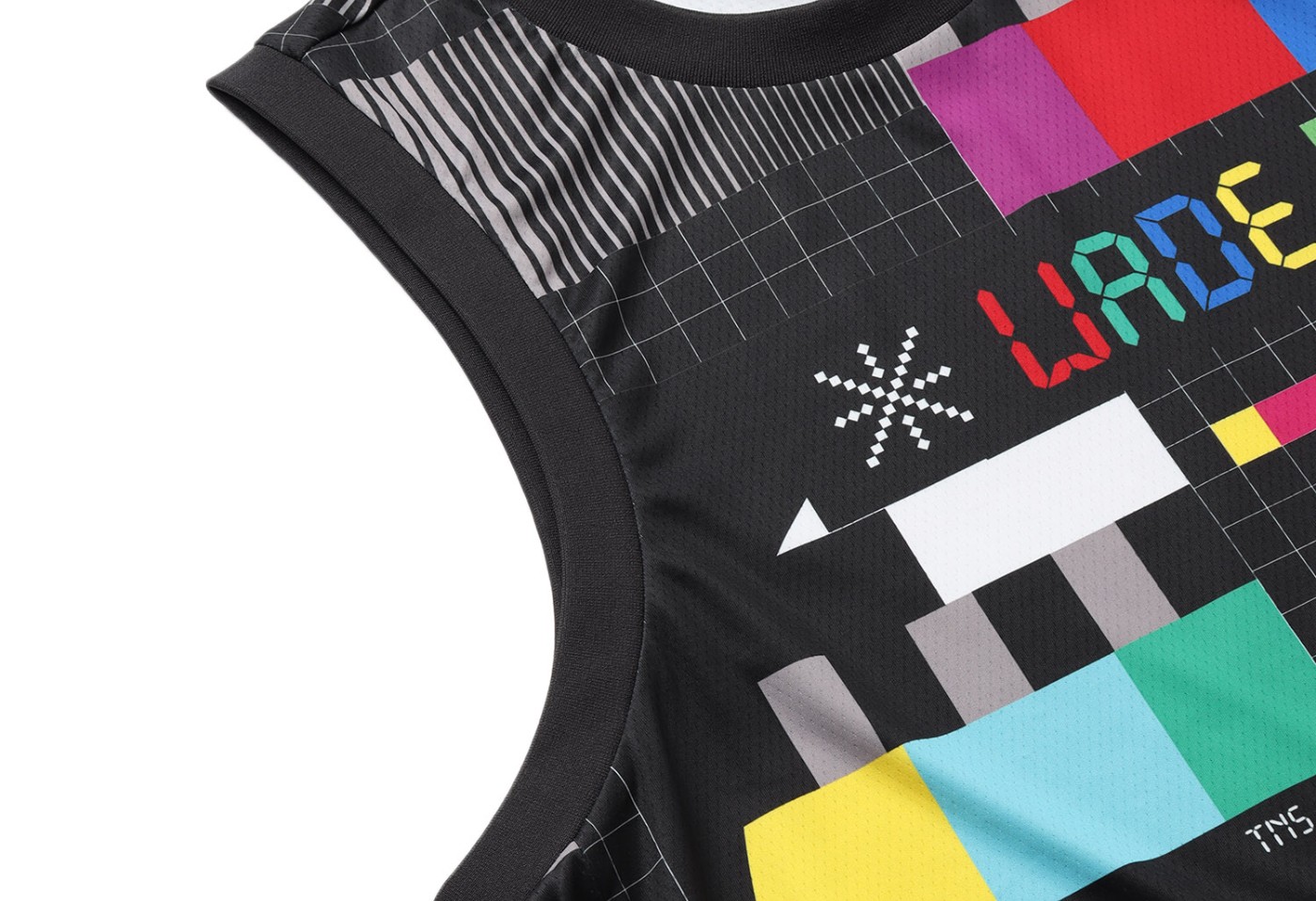 篮球背心选择了将信号侧视图的满印在了整件衣服上,同时又在细节处加入了韦德之道的元素,例如:胸口的彩色 “WADE” 以及背面的 “TEAM NO SLEEP” 等字样。