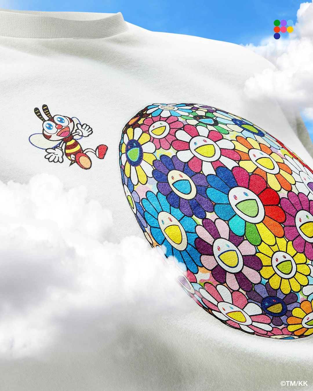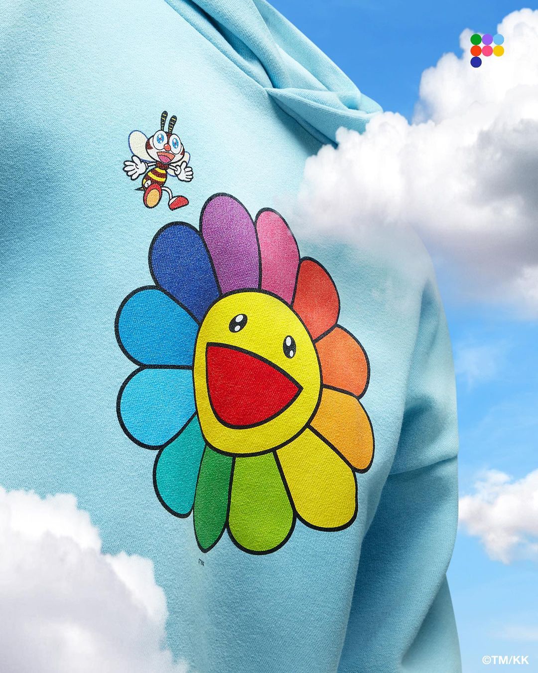 除了村上隆的太阳花格外,还有一个专为此次合作打造的蜜蜂形象。