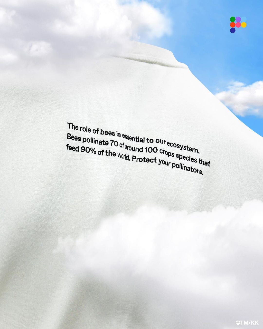 短袖 T 恤上一朵醒目的太阳花旁边有着蜜蜂,蜜蜂和花的组合巧妙自然;帽衫的中心图案则是被太阳花覆盖的地球。