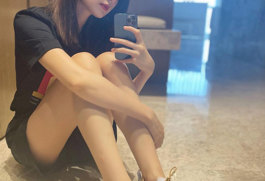 她刚刚上脚了一双最新球鞋,显得腿更细更长了。