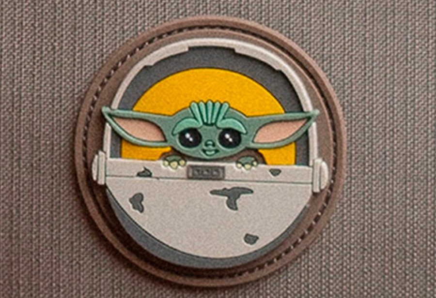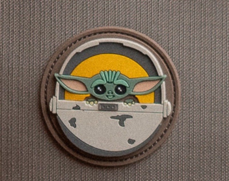 两款都装饰有两个橡胶补丁,一个印有半吞蛙的图案,另一个印有尤达宝宝形象,拉链细节则采用了浮空舱三个按钮的图案