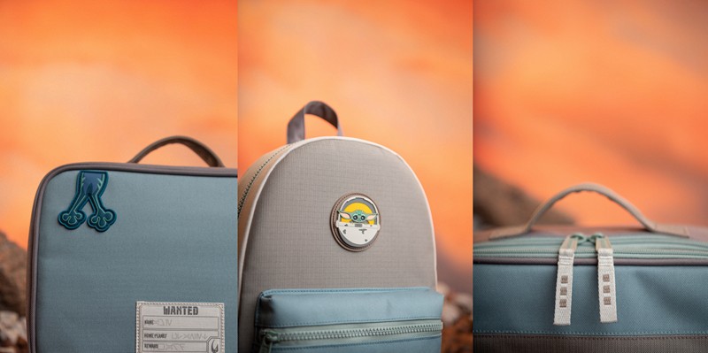 其中 Little America 双肩背包由剧中曼达洛人盔甲的迷彩补丁以及搭扣营造细节。