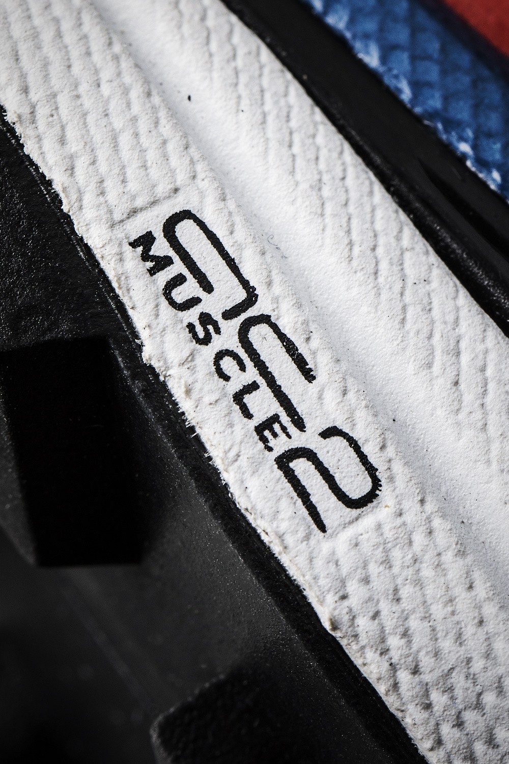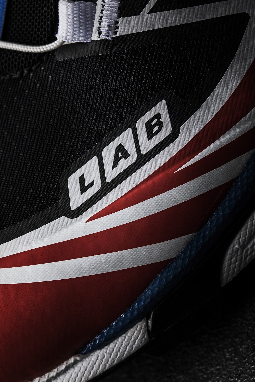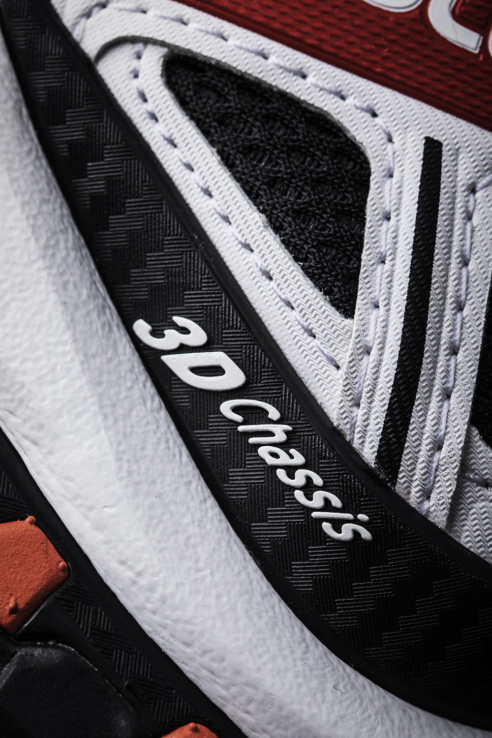这款以白色为底色,黑红元素以渐变的形式点缀在皮革部分。