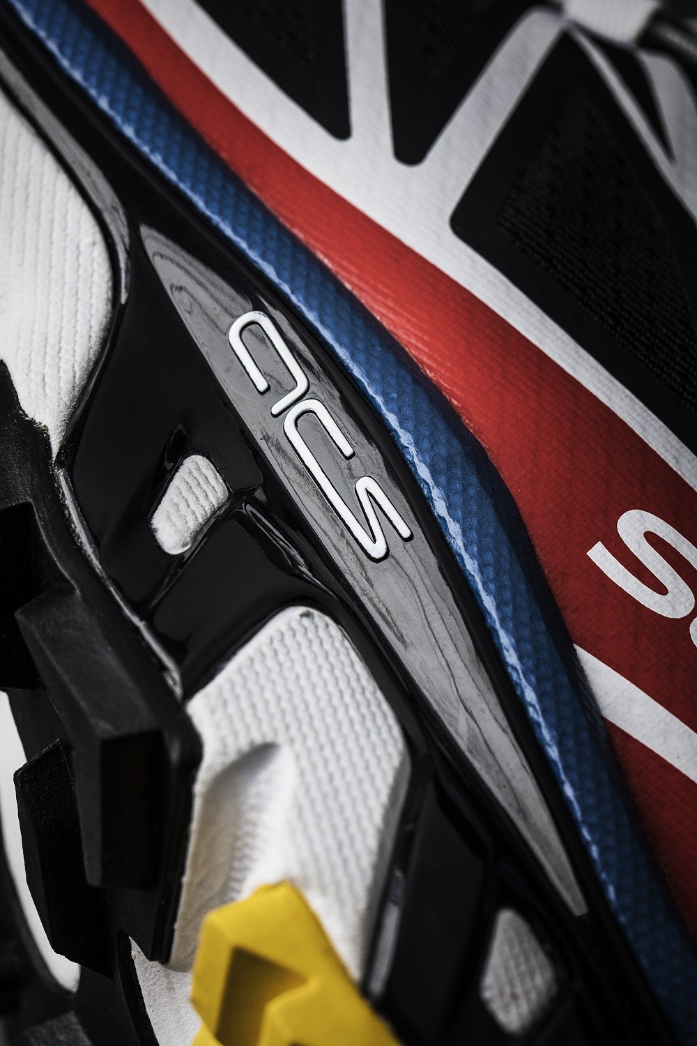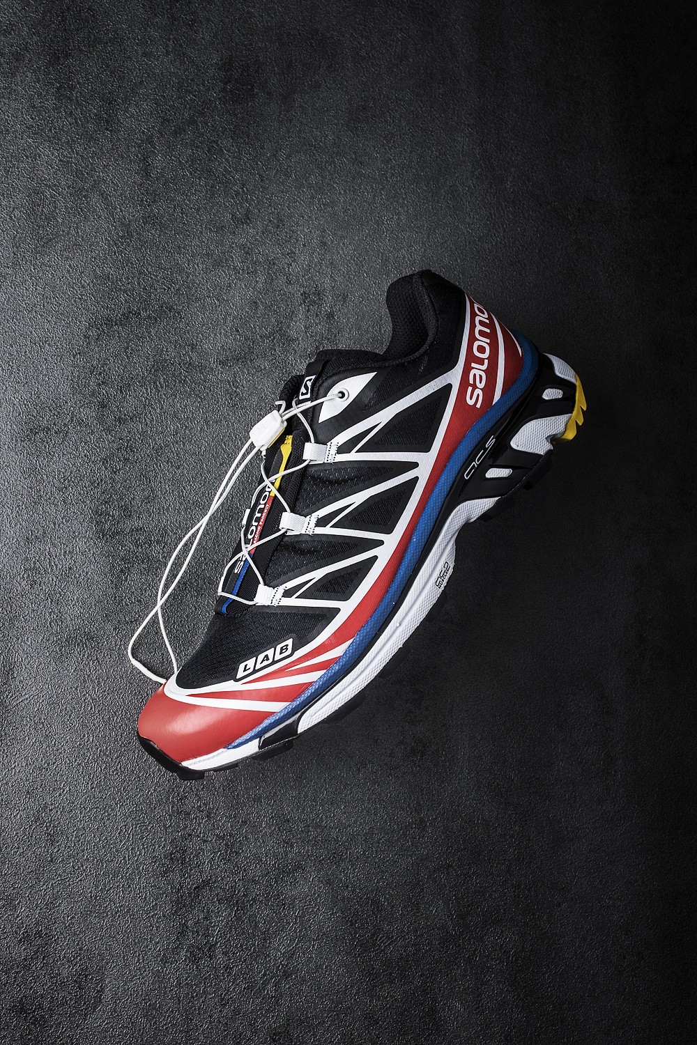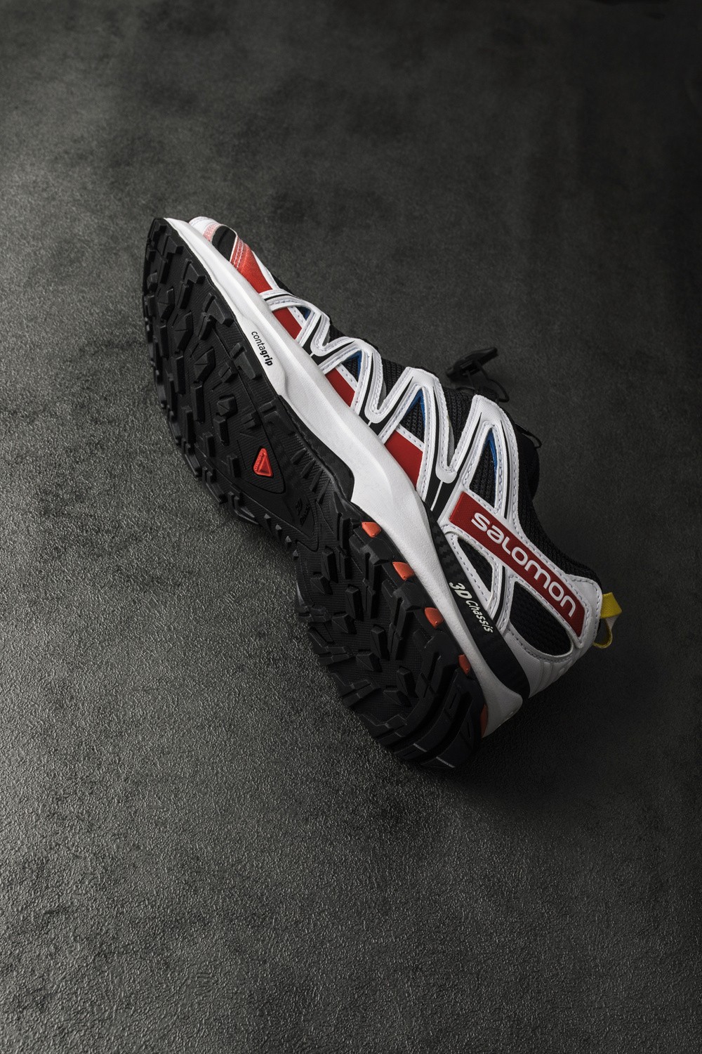 大面积红色,搭配蓝、黄两色点缀,就是 Salomon 标志性的三原色主题。