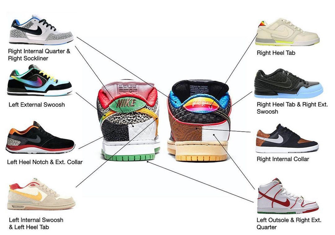 极为花哨的拼接融合手法,让人不禁想到 Dunk SB 中的神物 “What The Dunk” 配色。