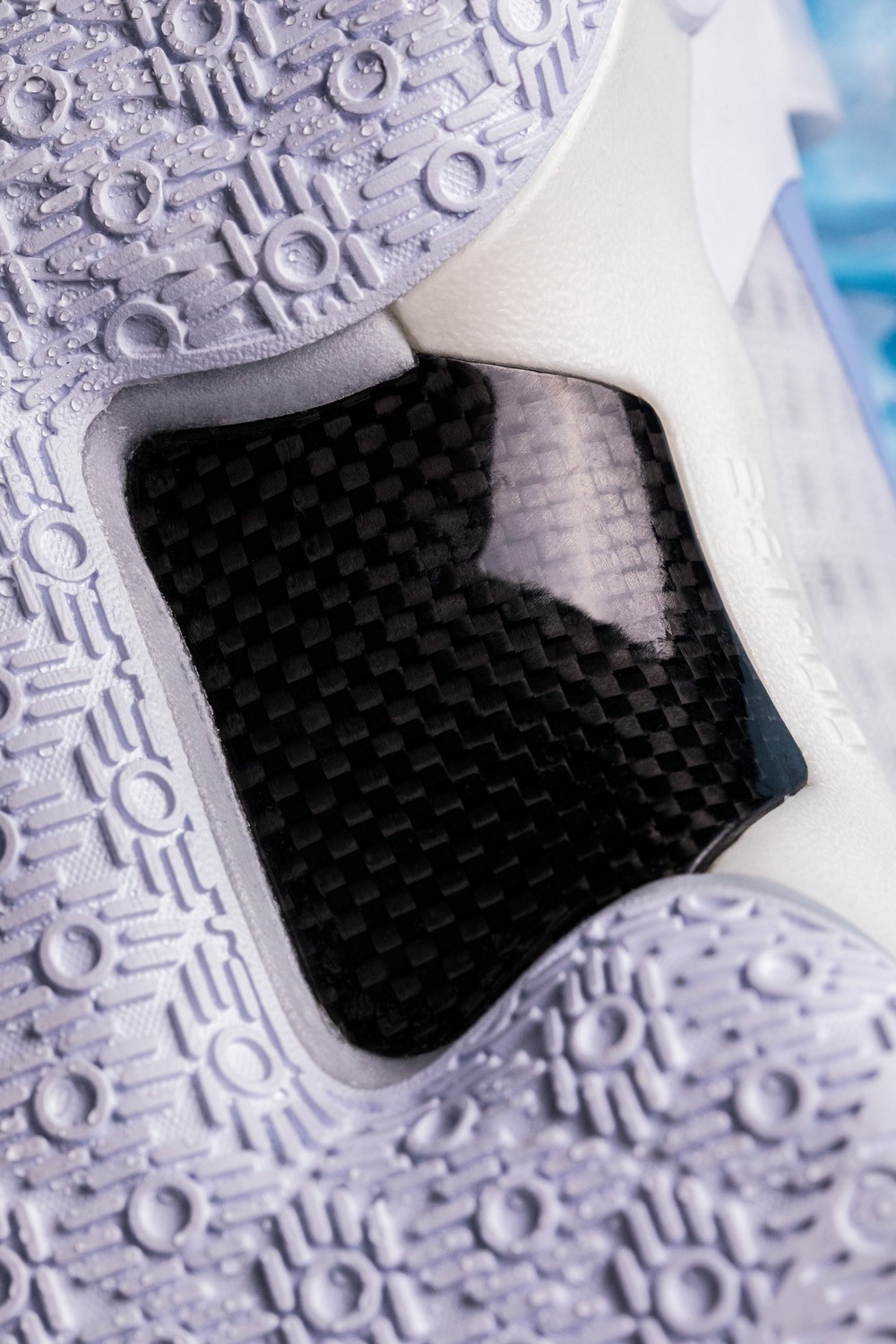足弓处的碳板是 AG1 PRO 的独有配置,和其他实战鞋的大面积碳板不同,AG1 PRO 的碳板追求厚度。