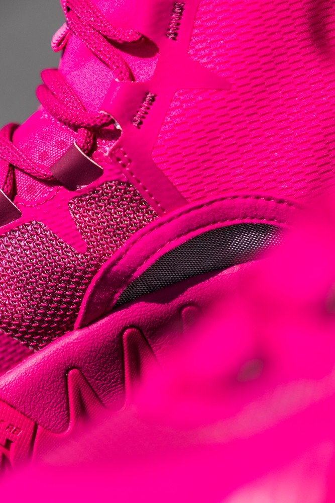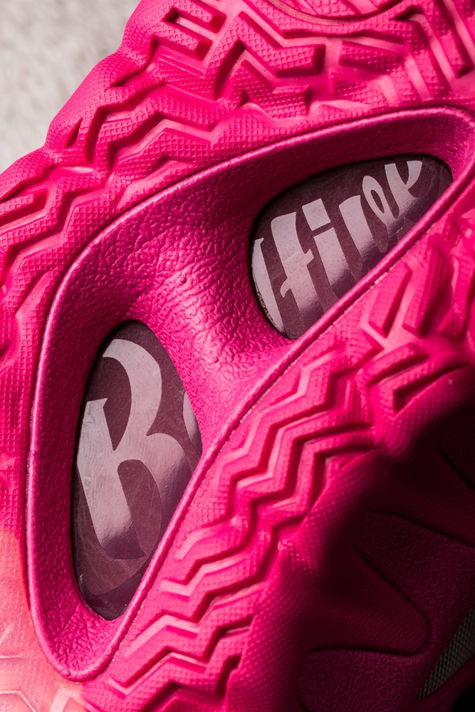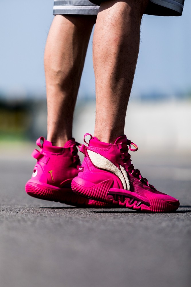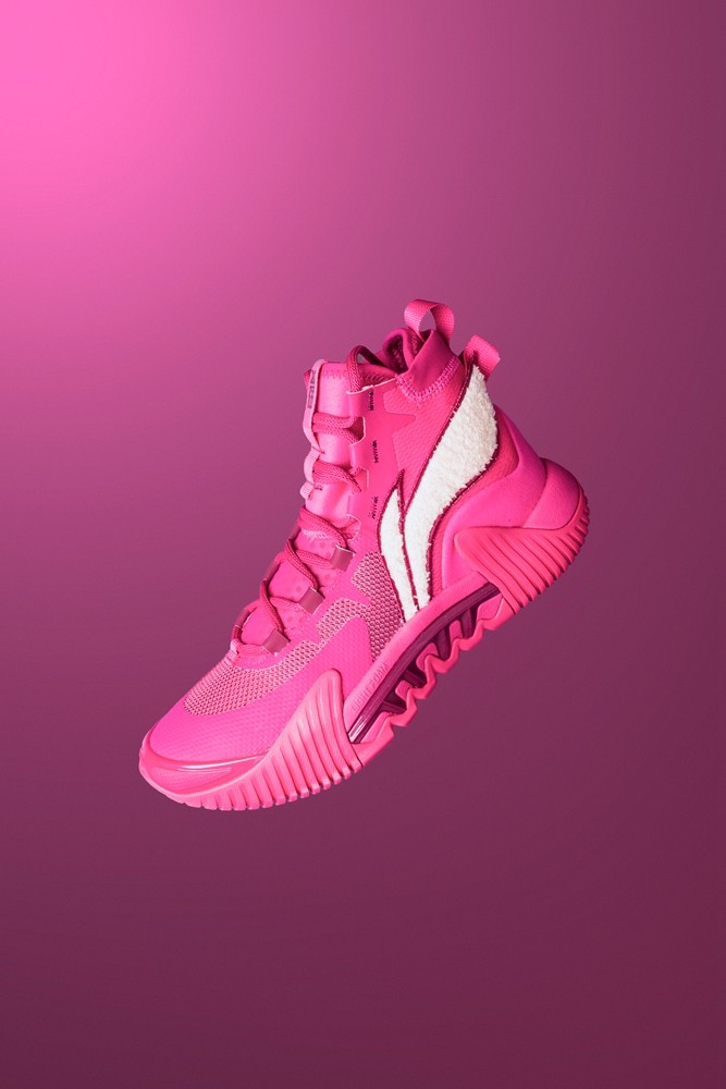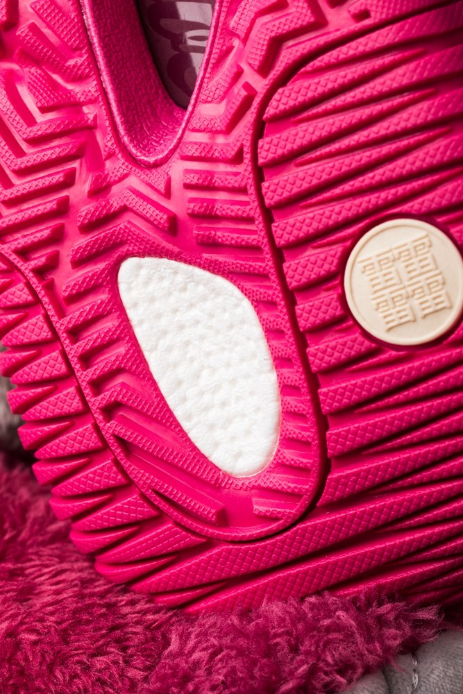 通体采用草莓熊标志性的粉红色调,与这款夸张又凶悍的鞋型结合,带来极为独特的视觉效果。