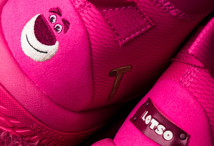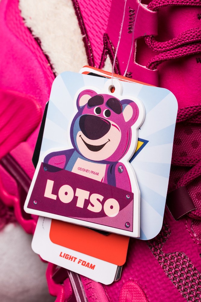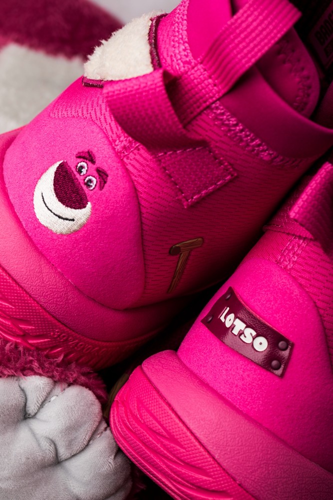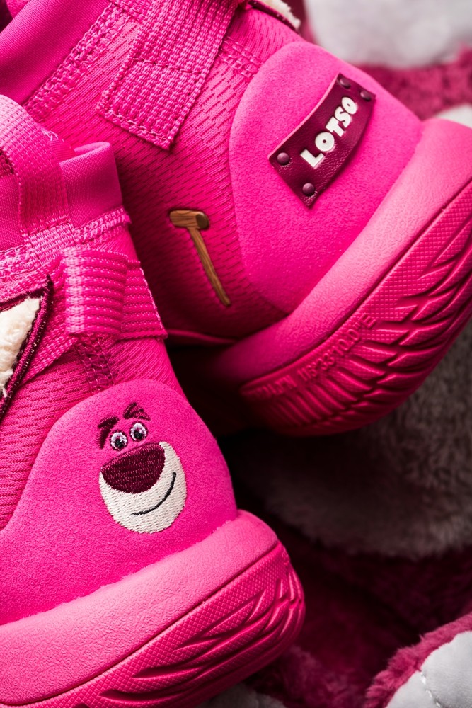 这次推出联名鞋的熊,是迪士尼电影《玩具总动员》系列中的角色草莓熊 Lotso。