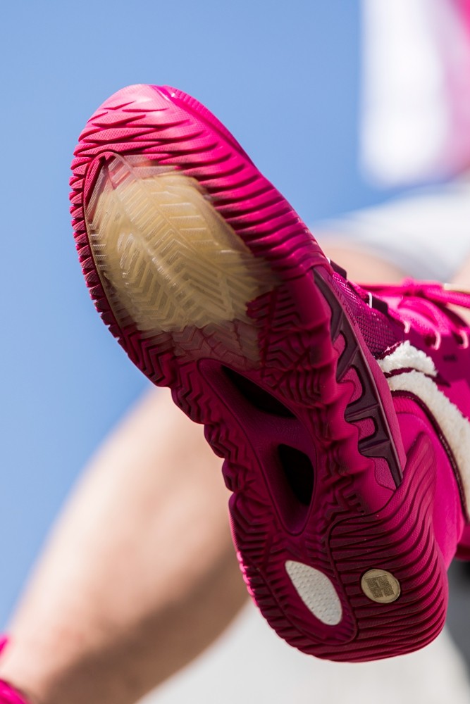 搭配大面积热熔材质及橡胶、TPU 补强,尽显外场鞋的狂野气质。