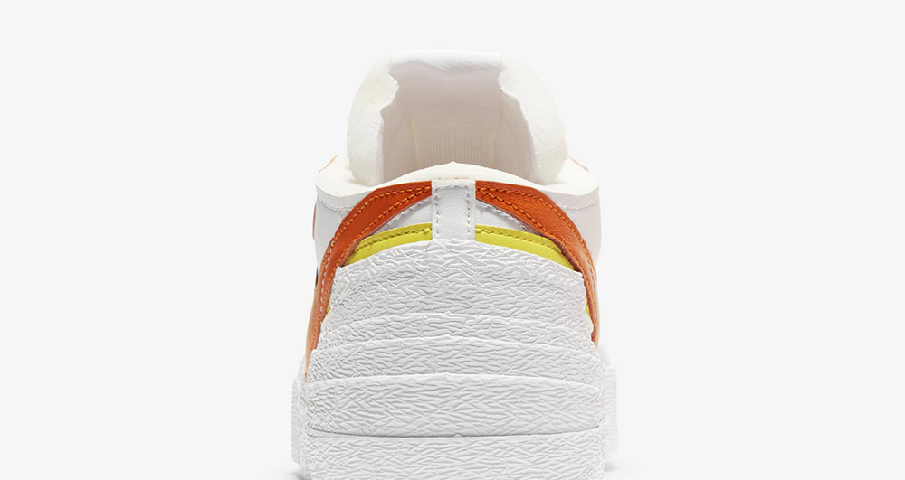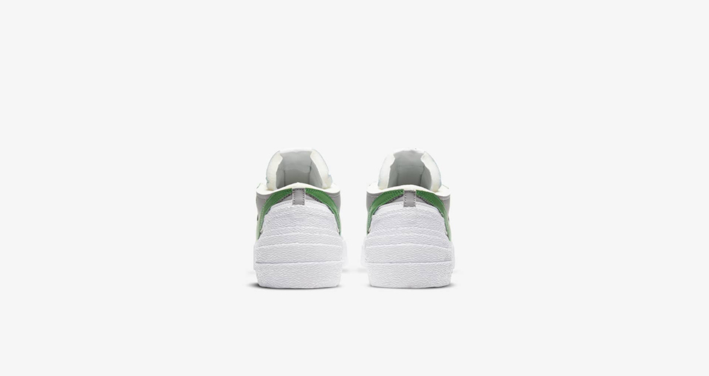 整双鞋采用 Nike Blazer Low 为设计蓝本,加上 sacai 惯用的解构设计,对整双鞋进行重新设计。