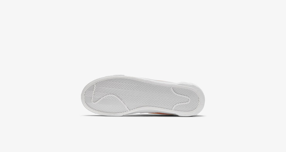 最后搭配灰白色鞋底,完善整双鞋的设计,纤细苗条的 Blazer 鞋型,绝对是夏日上脚的不二选择。
