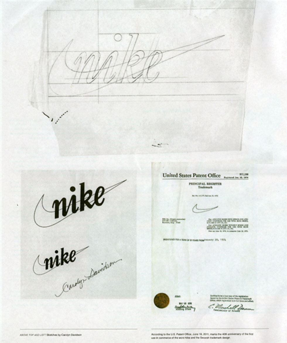 1971 年菲尔·奈特让一位设计系学生卡罗琳-戴维森(Carolyn Davidson)为自己的公司设计标志,并提出给她每小时 $2 美元的报酬,最终耗时 17.5 小时完成,相当于菲尔为了这个 Logo 只花了 $35 美元。