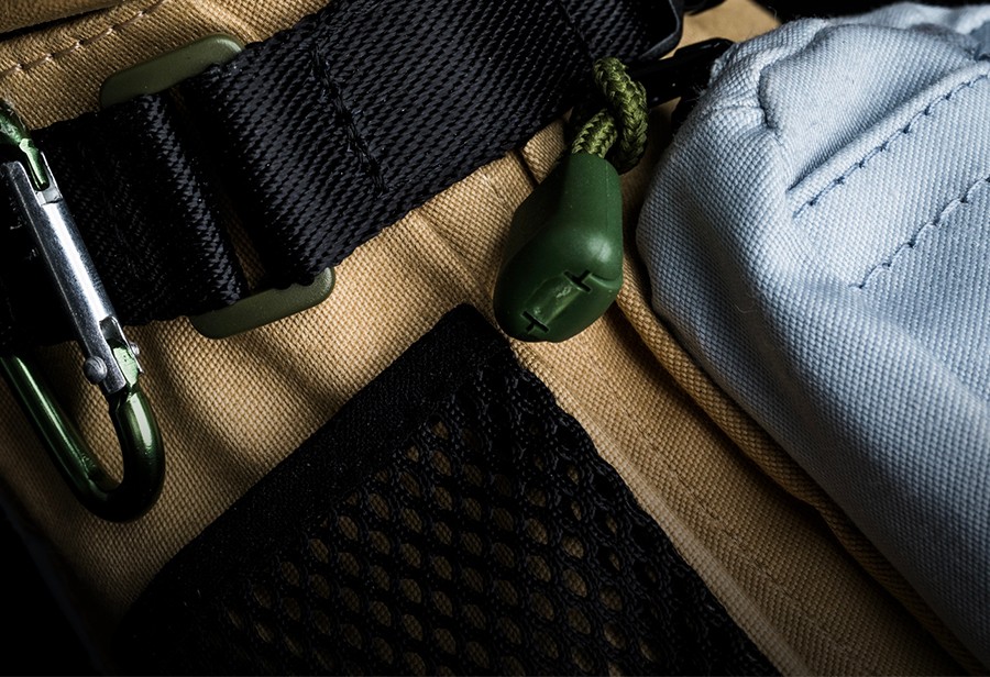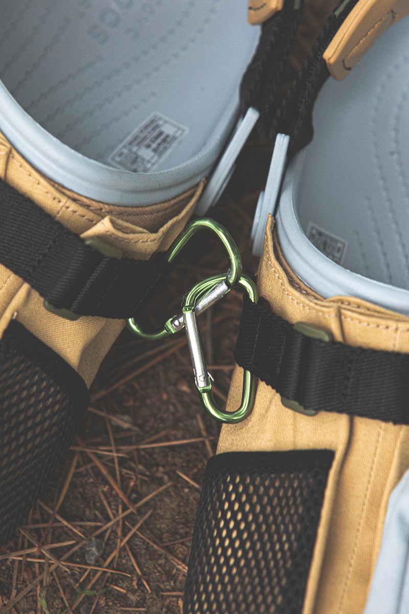 快拆锁扣及登山扣具,彰显单手即可调节的人性化设计与硬核机能属性。
