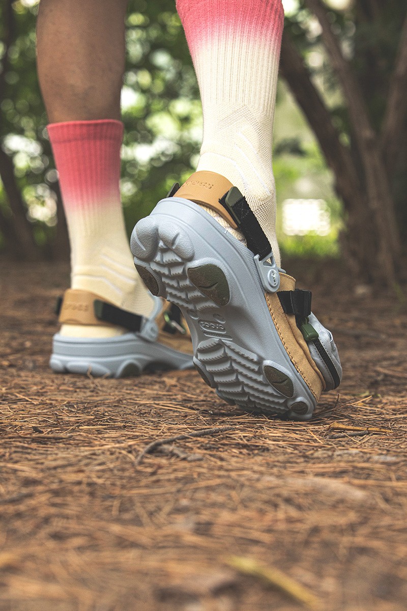 另一款 BEAMS x Crocs Classic All- Terrain Outdoor Clog 则以户外环境为设计核心,带来卡其与灰黑两款配色。