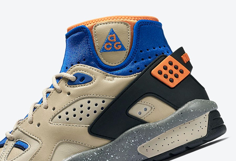 整双鞋在设计上融入了 Air Huarache 和 Air Force 1 CMFT 的经典元素,卡其色的皮革材质呈现出户外造型。