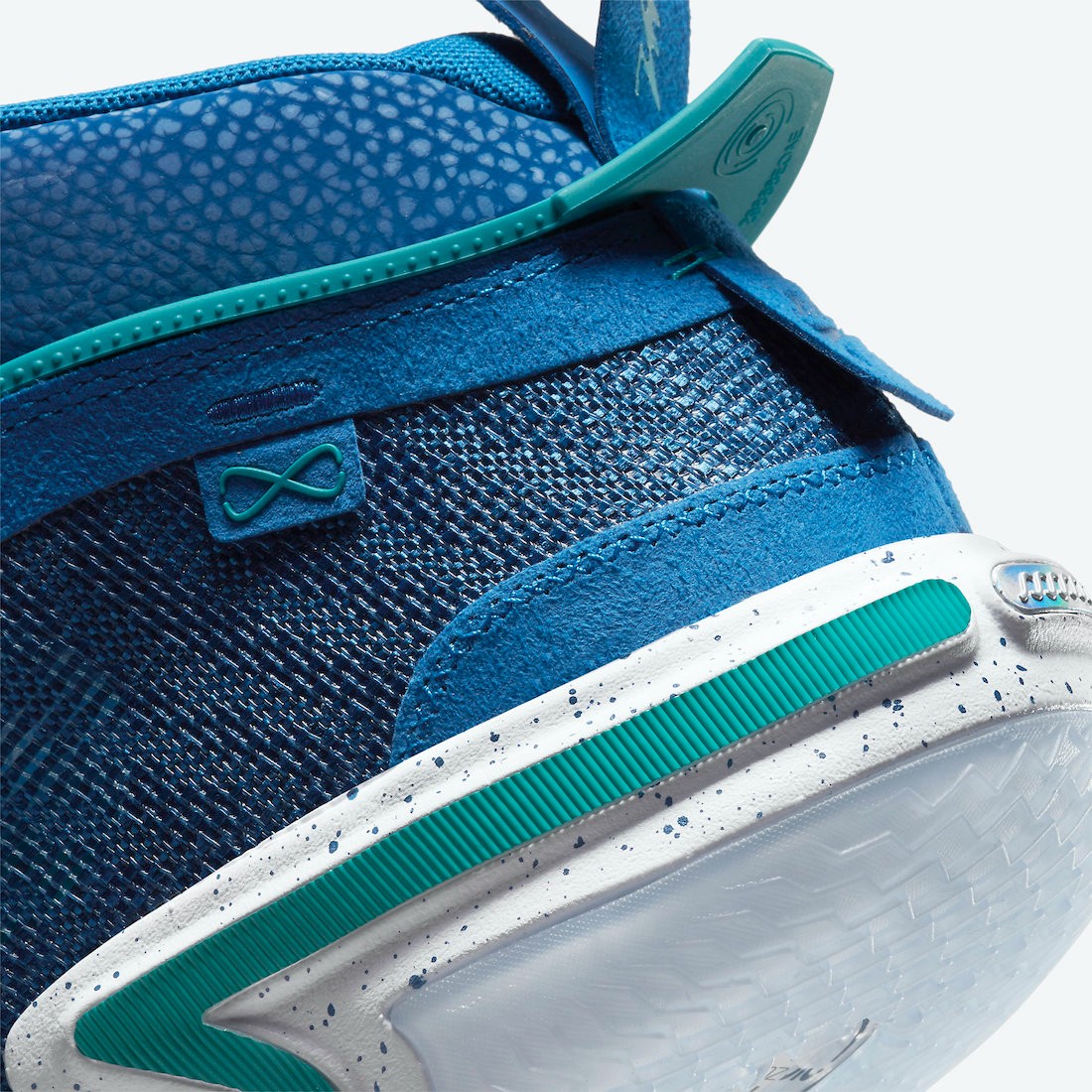 其中一款是东契奇 PE,以蓝色为主体,搭配白色和湖水绿点缀。