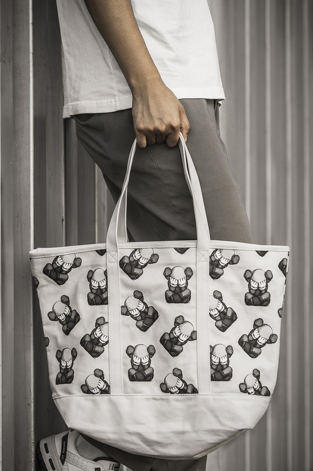 除了 T 恤外还有 KAWS 主题的包袋单品,造型宽大使用,男女通吃。