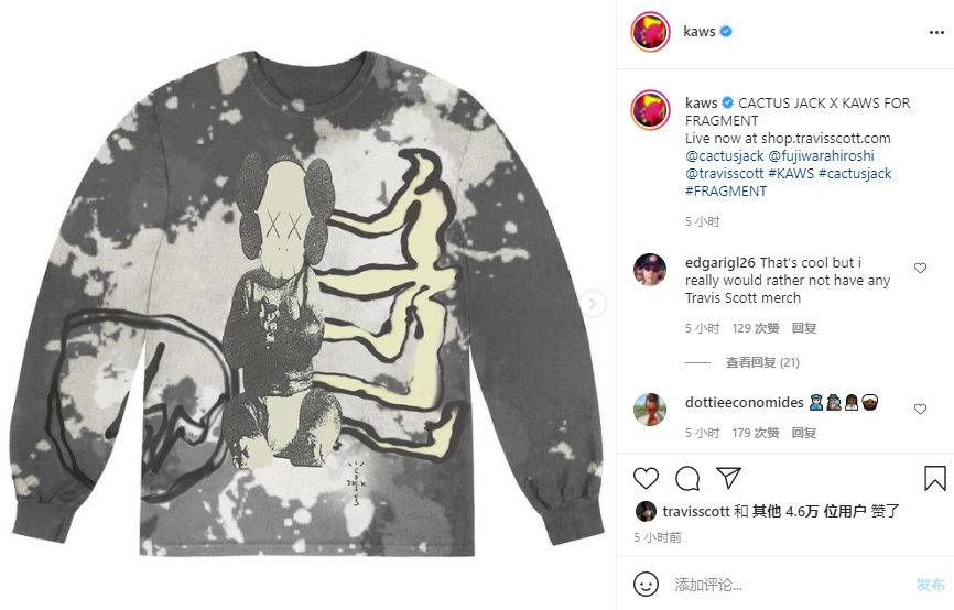 除了全新的 UT 系列外,KAWS 本人还在社交网站上晒出了与 Cactus Jack 和 fragment 的联名服饰,造型同样相当讨喜。