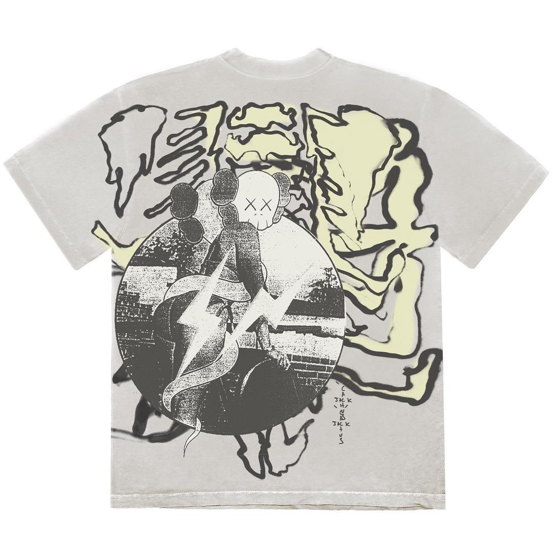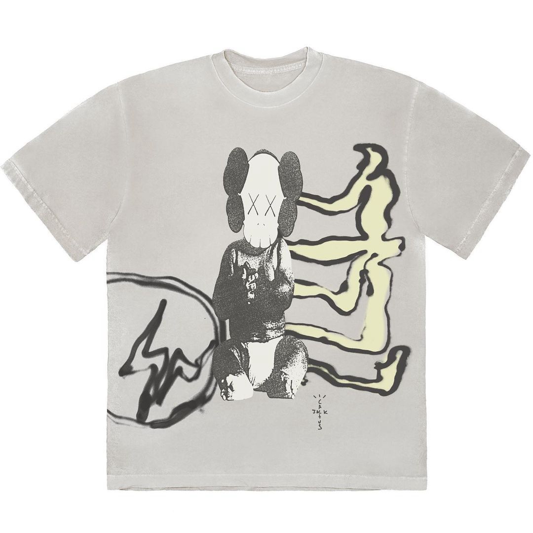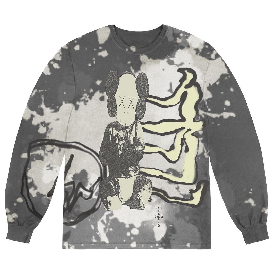 整体配色选择了 Travis Scott 最爱的大地色系为主调,其中长袖 T 恤还采用了扎染设计,并且印有特殊造型的 KAWS 和闪电 Logo,带来极强的视觉冲击力。
