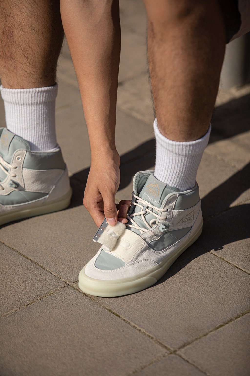 帆布和麂皮拼接鞋面,搭配灯芯绒材质 Vans Logo,鞋身层次感十分丰富。