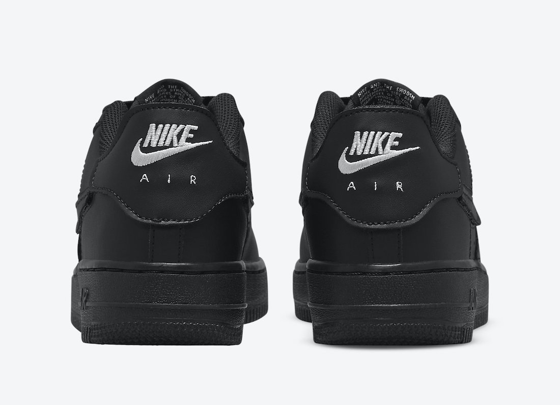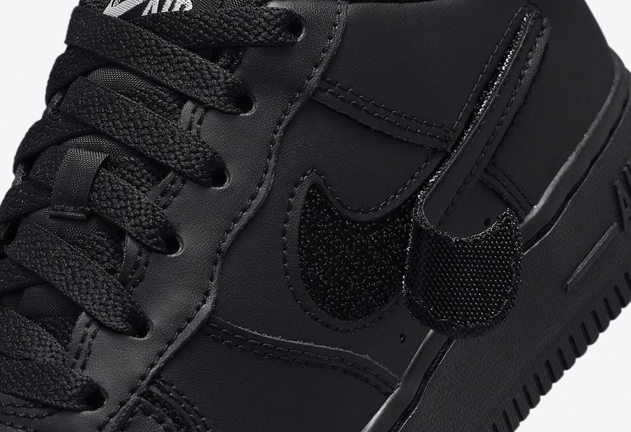 鞋面以纯黑色为主调,鞋头、Swoosh 以及后跟采用魔术贴的设计,相比全鞋面可撕的设计,更为简约。