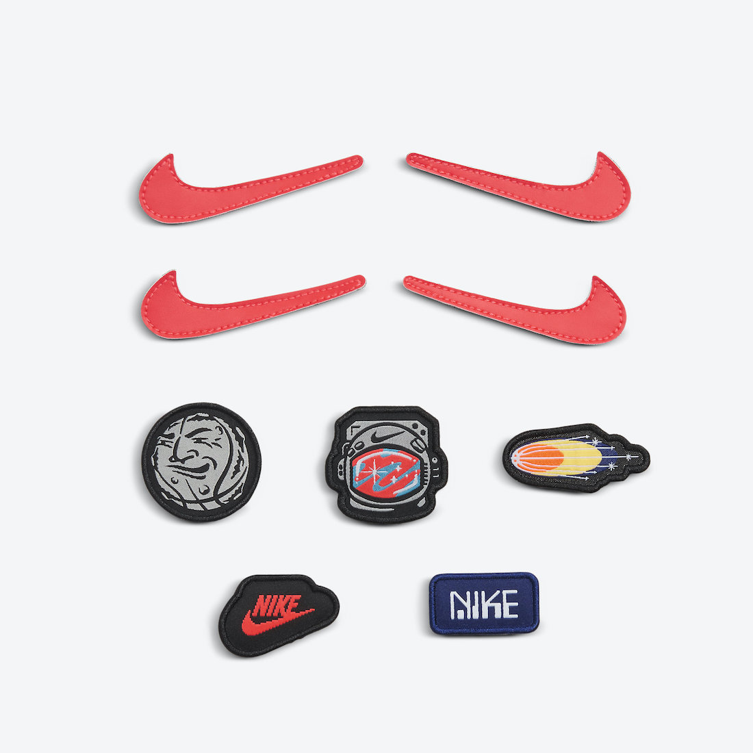 随鞋附赠的四个粉红色 Swoosh 以及五个图案徽章,可以自己设计鞋款,可玩性极高。