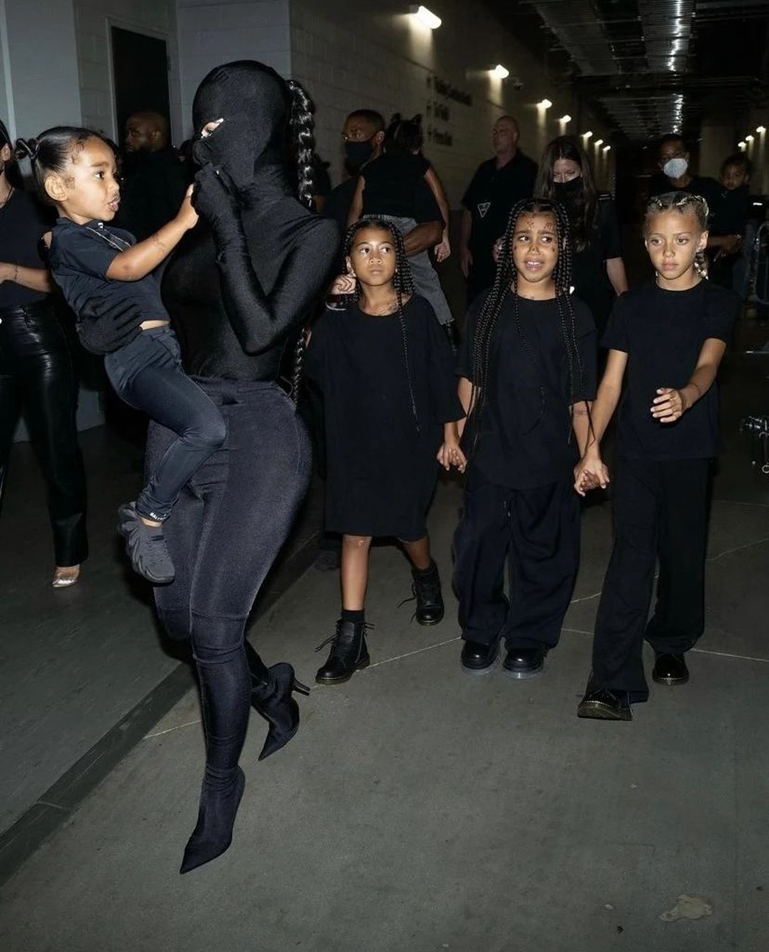 其中更可谓群星闪耀,甚至连侃爷的前妻金·卡戴珊也被邀请到了现场,并十分配合的穿上了连体紧身衣,这一套操作下来很难不让小编怀疑这俩人到底什么情况。